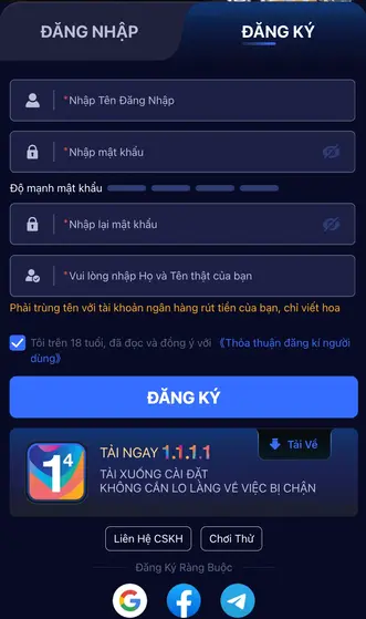 Sau khi đăng ký thành công, bạn có thể đăng nhập và trải nghiệm các trò chơi yêu thích ngay lập tức.