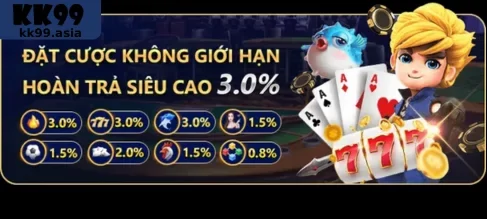 Các ưu đãi tại KK99 mang đến cơ hội tăng thưởng, trải nghiệm trò chơi hấp dẫn và tận hưởng nhiều lợi ích bổ sung. Hãy tham gia ngay hôm nay để không bỏ lỡ các phần thưởng giá trị và nâng cao cơ hội thắng lớn!